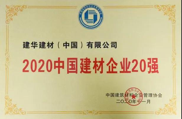 建华建材(中国)有限公司在“2020中国民营建材企业100强”中排名第三名;