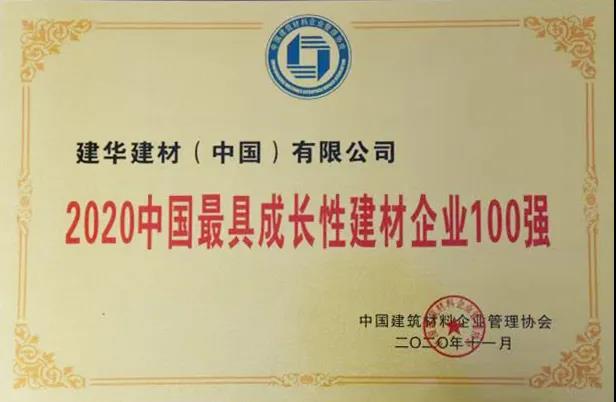 建华建材(中国)有限公司在“2020中国最具成长性建材企业100强”中排名第六名!