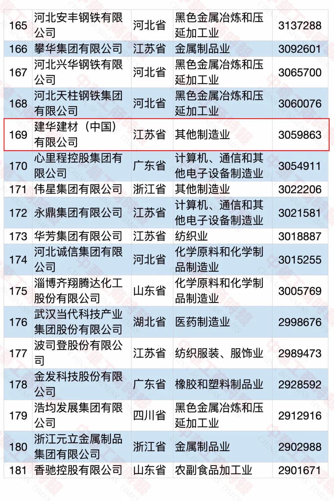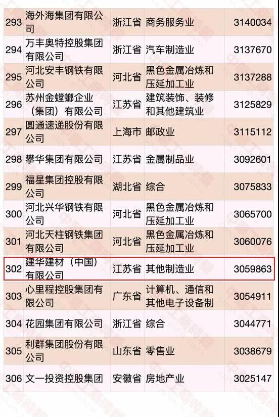 建华建材集团(以下简称建华建材)在2020中国民营企业500强中排名302位;在2020中国制造业民营企业500强中排名169位。