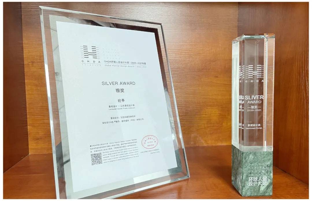 作为对城市景象的一种解读与再生,从嘈杂纷乱的旧城背景环境中挖掘新的可能性,砼亭不仅荣获“2021 IPA国际房地产大奖-上海最佳公共建筑五星奖”,更是斩获“2020-2021年度环球人居设计大奖-公共景观设计类银奖”。