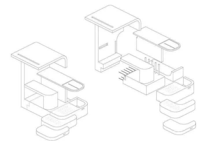 地面部分采用预制高强混凝土板,利用场地拆除建筑废弃物为原材料,同时配合调平架空可回收体系,让所有地面铺装产品做到预制可循环利用,将低碳环保的概念贯穿项目整体。