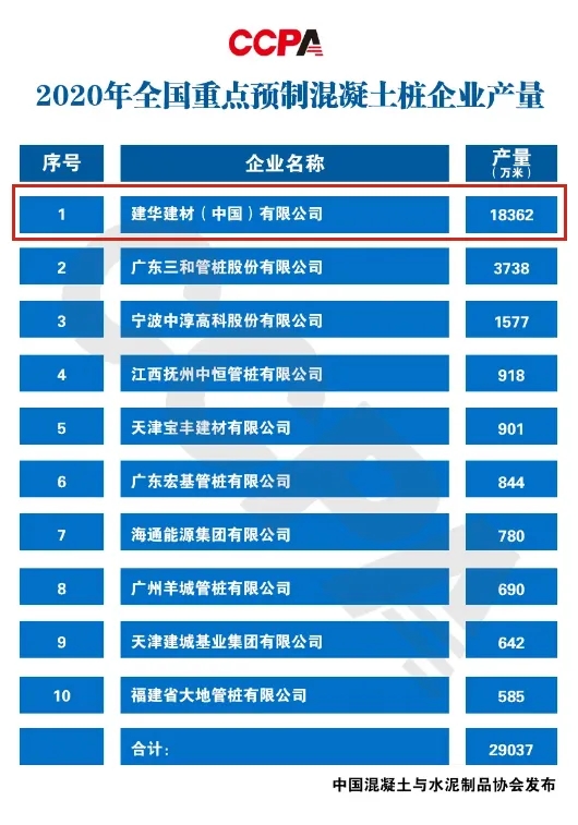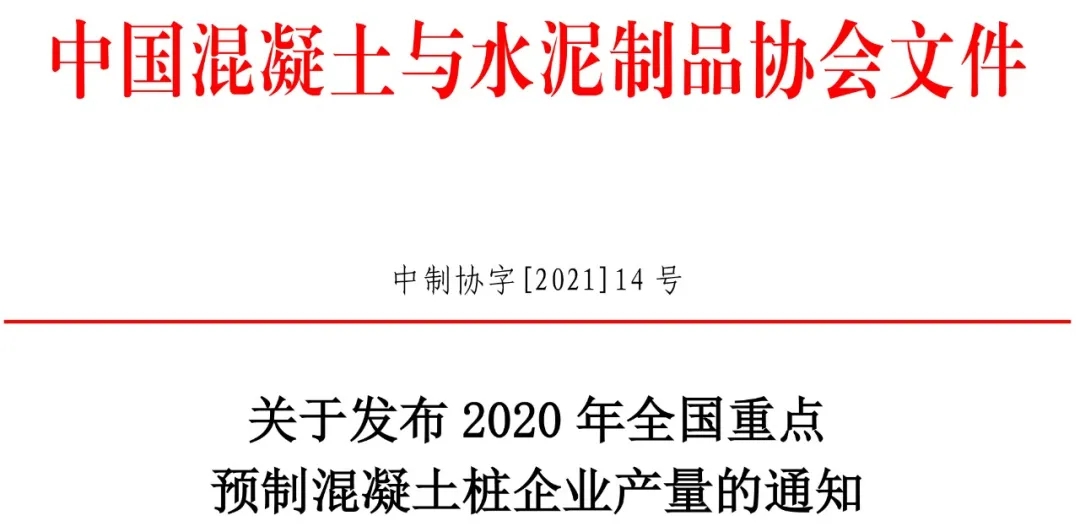 6月1日,中国混凝土与水泥制品协会对全国重点预制混凝土桩企业2020年生产经营情况进行了调研和数据统计,并发布了2020年全国重点预制混凝土桩企业产量排名情况。