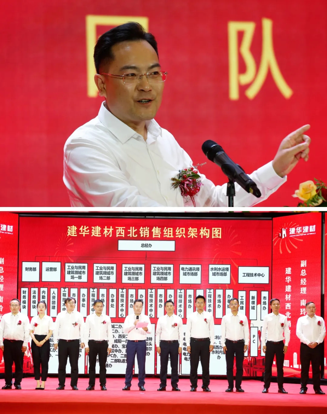 西北销售副总经理南玲光向大家介绍了西北销售组织架构和管理团队,南总指出建华建材西北销售公司的成立,是建华建材集团在西北区域战略部署的重要举措,也是公司发展西北市场的决心与力度,可以充分发挥区域优势、产销优势、资源优势、人才优势、运输优势等,更好的参与市场竞争及市场推广与开拓,为广大客户提供更优质的综合性服务与全方位合作。