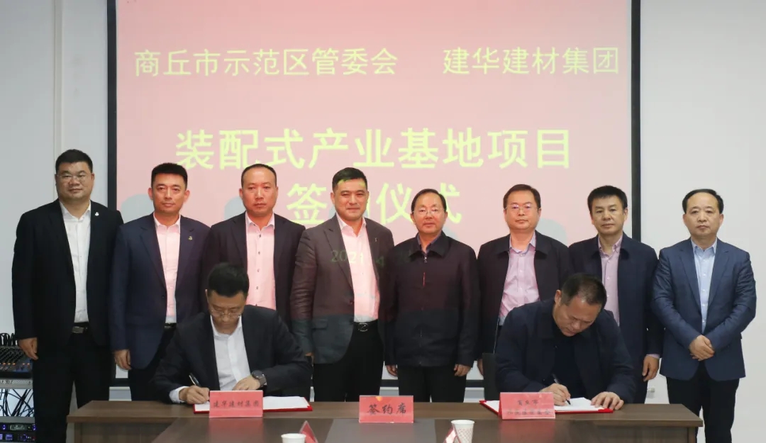 4月28日,建华建材集团与商丘市城乡一体化示范区管委会举行绿色智能装配式建筑产业基地项目签约仪式。商丘市人大常委会副主任、示范区党工委书记何振岭,示范区党工委副书记王俊峰,党工委委员、物流区管委会主任张留雁,党工委委员冯新以及区经发局、住建局等相关部门领导;建华建材集团总裁助理兼投资发展办主任汪峰,中原区域总经理刘勇,菏泽建华、徐州建华副总经理(全面负责)倪杰,投资发展办副总监杨元等领导出席了签约仪式。