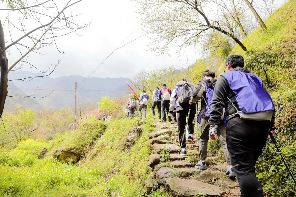吴越古道为五代十国时期吴越(杭州临安)与南唐(宣城宁国)的主要通道,一路溪流陪伴,云雾缭绕。但同时,长达十几公里的路程,路窄坡陡,跌宕难行。此次拓展的第二天便是徒步穿越吴越古道,体悟徽商吃苦耐劳、坚持执着的精神。