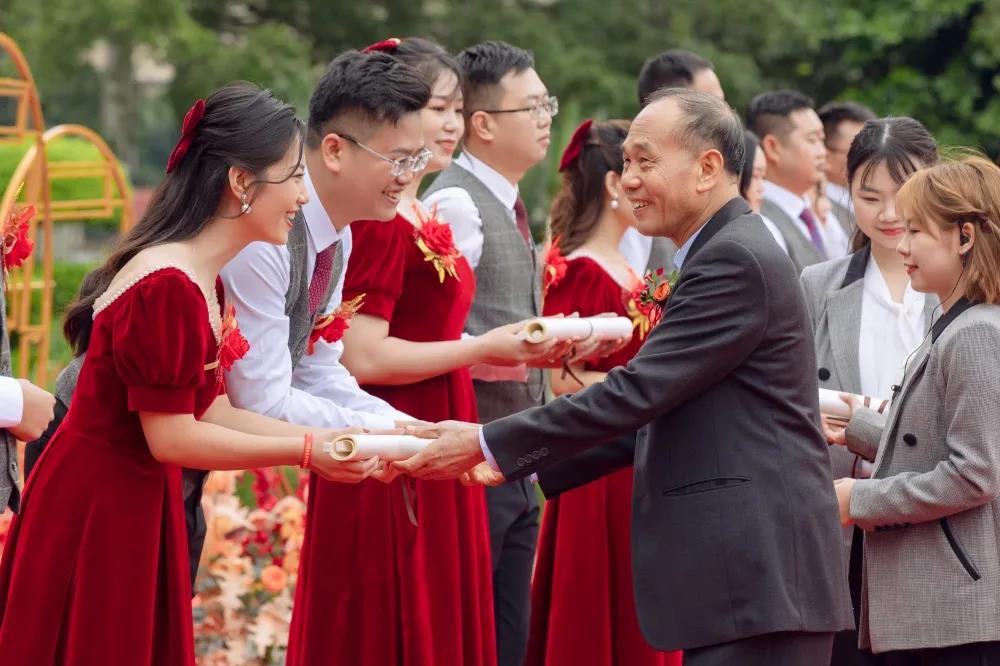 许景新先生亲自为新人们证婚,对全体新人喜结良缘表示祝贺,希望全体新人在人生旅程中互敬互爱、和睦相处,用心经营幸福家庭,用爱缔造美好未来!