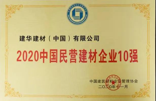 建华建材(中国)有限公司在“2020中国民营建材企业100强”中排名第三名;
