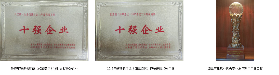 2014年获得如皋市建筑业优秀专业承包施工企业金奖