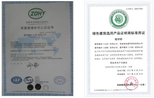 2015年通过国家建筑材料测试中心认证为“绿色建筑选用产品”。